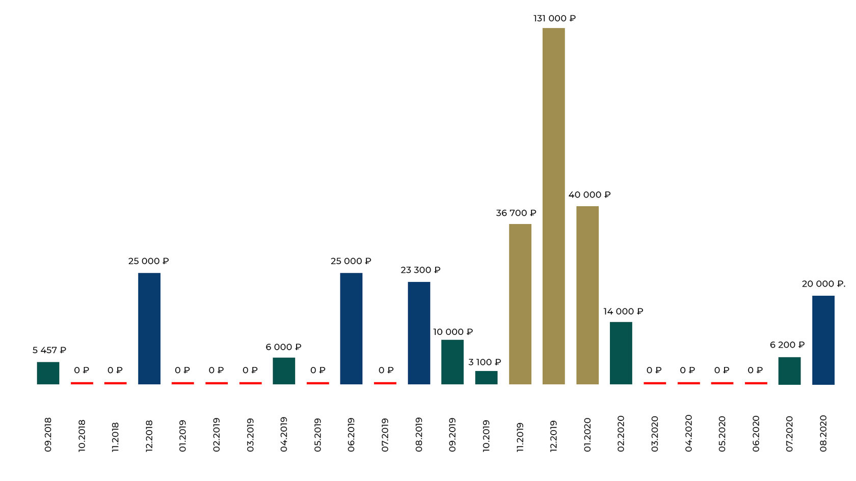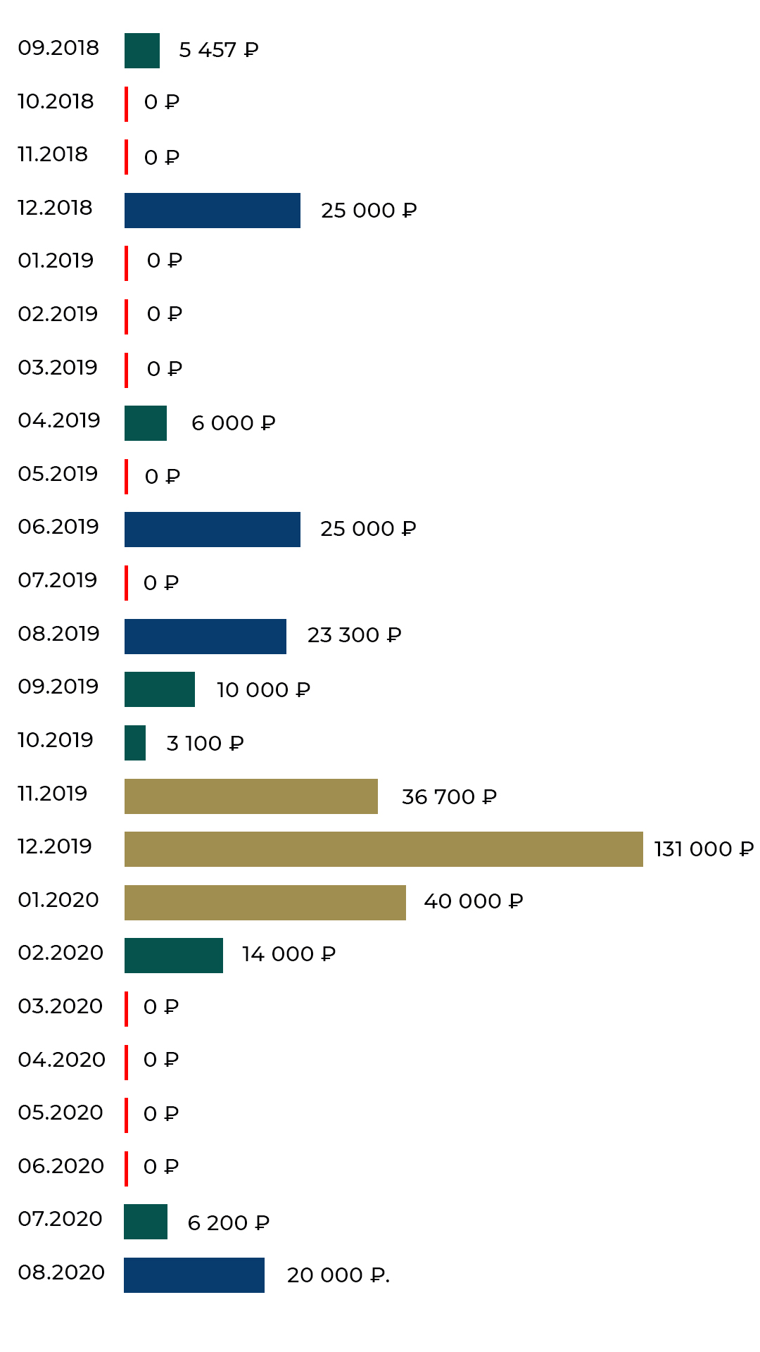 В нашем проекте ТОР ВЕАТ - Москва инвестор из 24 месяцев получил всего 13 оплат, т.е. 54% всех месяцев были без прибыли, при этом он получил 43,22% годовых.